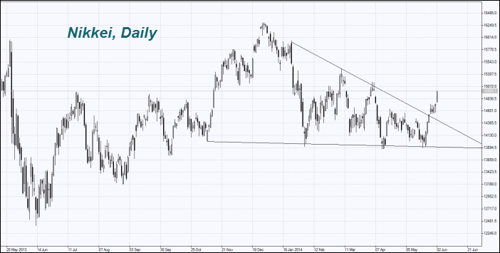 Японский фондовый индекс Nikkei достиг двухмесячного максимума на фоне улучшения экономических показателей Китая. Инвесторы ожидают, что это окажет позитивное влияние на весь Южно-Азиатский регион. Как мы уже писали в предыдущих обзорах, инфляция в Японии достигла целевого уровня, установленного правительством. Теперь инвесторы ожидают улучшения экономических показателей. Значимые данные по Японии на этой неделе начнут выходить со среды.