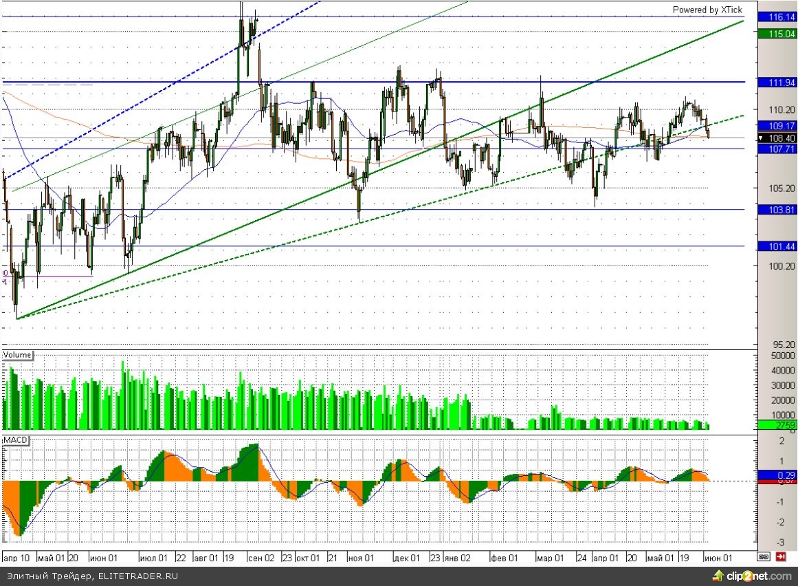 Способствовать возможной коррекции могут также и нефтяные котировки. В частности по сорту Brent «черное золото» пробило восходящую трендовую линию и торгуется уже ниже 108,5 долларов за баррель.