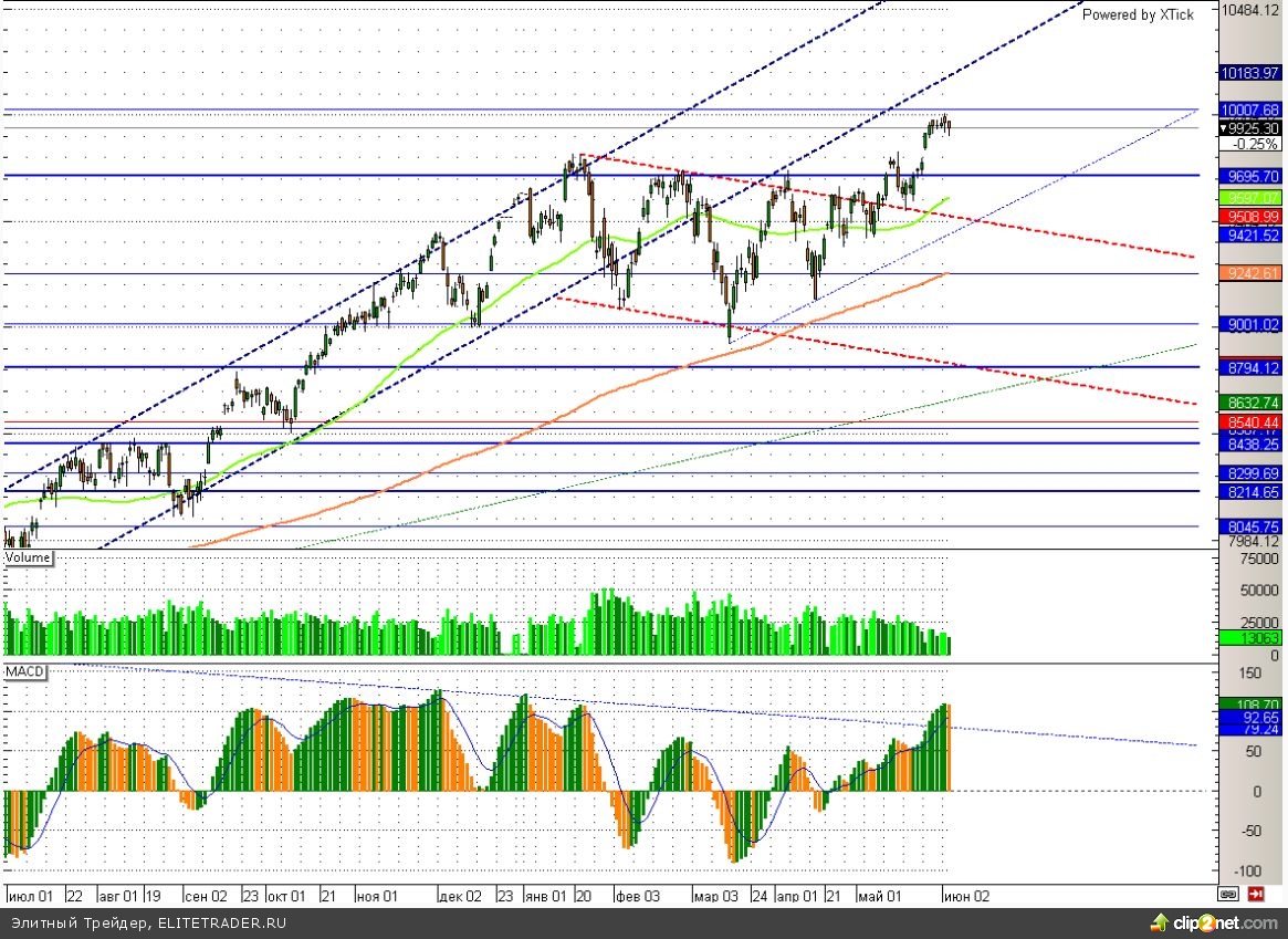 Индекс SnP500 продолжает обновлять все новые и новые максимумы. Сейчас на его пути нет значительных сопротивлений, а о возможной коррекции говорит лишь дивергенция между ценой и MACD гистограммой