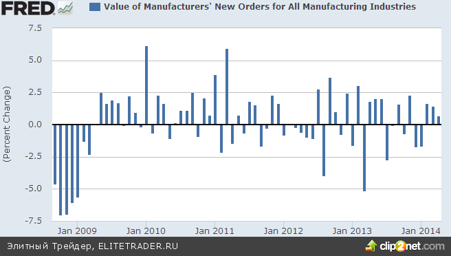 Данные Минторга по промышленным заказам также оказались сильнее ожиданий. В апреле заказы выросли на 0,7%, против прогнозных 0,5%, причем мартовское значение было пересмотрено с 0,9% до 1,5%. Заказы растут третий месяц подряд.