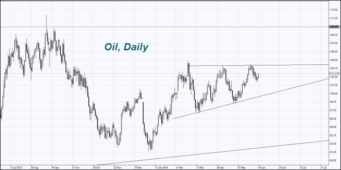 Вчерашний рост промышленных заказов в США за апрель превысил прогнозы и составил 0,7%. Он продолжается уже третий месяц подряд. Однако эта информация смогла оказать заметное позитивное влияние только на акции автопроизводителей General Motors (GM) и Ford Motor (F), которые подорожали почти на процент. По сравнению с прошлым годом продажи автомобилей в США выросли на 11,4%. Сегодня в США ожидаются негативные данные по торговому балансу за апрель и производительности труда за первый квартал в 12-30 СЕТ. До этого в 12-15 выйдет отчет по занятости от агентства ADP, который также может оказаться слабым. Сейчас фьючерсы на американские фондовые индексы торгуются «в минусе». Позднее выйдет индекс активности в непроизводственной сфере ISM в 14-00 СЕТ и экономический обзор «Бежевая книга» в 18-00 СЕТ. Мы не исключаем, что они могут оказаться умеренно позитивными.