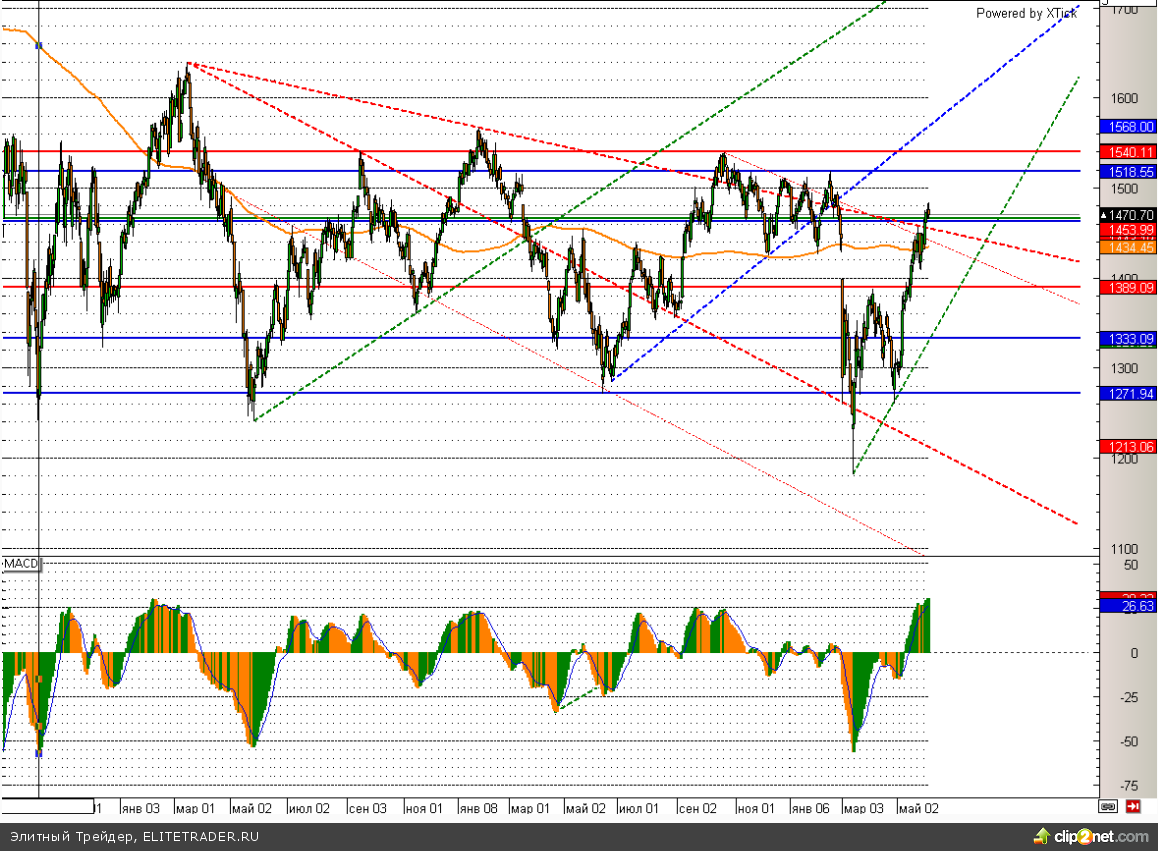 Российский рынок закончил торговую сессию четверга снижением на 0,7% по индексу ММВБ. При этом ММВБ, несмотря на незначительное снижение – продолжает торговаться выше нисходящей трендовой линии и имеет неплохую возможность возобновить подъем на новые максимумы.