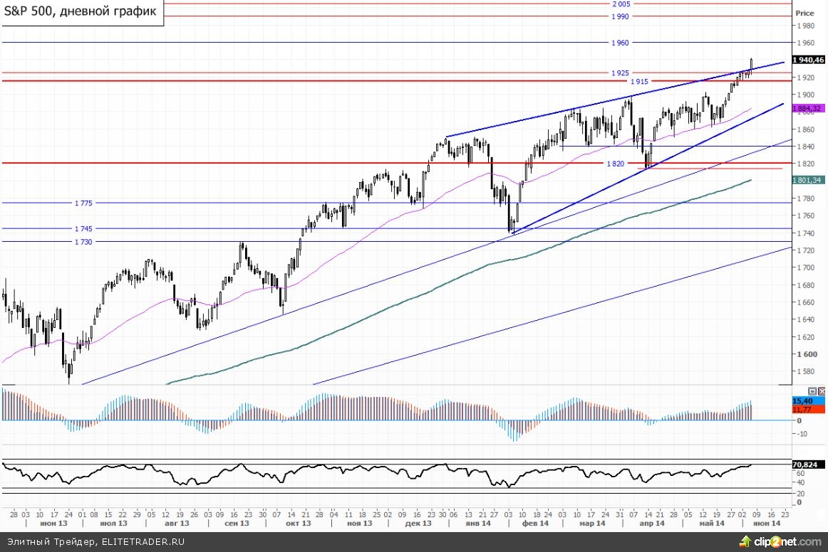 Рост на развитых фондовых площадках в четверг был продолжен. В моменте немецкий DAX впервые в истории побывал выше уровня в 10000 пунктов. Свои исторические максимумы в очередной раз обновили и американские индексы. SnP 500 вышел за пределы восходящего клина и поднялся к отметке 1940. В данный момент мы наблюдаем за ускорением фазы роста. График начинает двигаться в формате экспоненты, тогда как раньше наблюдался постепенный трендовый рост с регулярными плоскими коррекциями. Если в ближайшей перспективе взлет наверх продолжится теми же темпами и начнет пахнуть массовым шортсквизом, то значит конец этой истории уже совсем близок. Причем с каждым днем все больше и больше верится в вариант, когда падение начнется неожиданно, без каких-либо триггеров или причин. Медленного спуска с горы быть не может. Просто откроем терминал и увидим -5% или -10% по американским индексам. Но пока это конечно все лирика. До сих пор все предыдущие технические предпосылки к развороту развитых площадок постепенно нивелировались и караван шел дальше. Ближайшая зона сопротивления по SnP 500 находится в диапазоне 1955-1960. Вероятность продолжения основной тенденции всегда выше, чем вероятность ее слома.