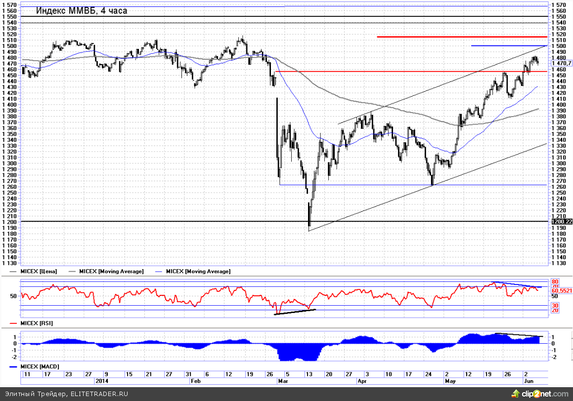 Растущий тренд на российском рынке акций пока остается актуальным, однако, как мы уже ранее говорили, его потенциал ограничен широкой зоной торможения 1490-1515 по индексу ММВБ. Покупать рынок широким фронтом уже не рекомендуется, в среднесрочной перспективе будут более привлекательные уровни. Снижение в первую очередь будет вызвано сезоном дивидендных отсечек, основная фаза которого с этого года будет продолжаться до второй половины июля (в прошлые годы это был апрель-май). С учетом предшествующей тенденции роста проигнорировать сезонный период распродаж вряд ли получится. Если не брать в расчет аномальные 2008 и 2009 годы, то российский рынок исправно корректировался как раз во время периода закрытия реестров по основным голубым фишкам. С тех пор как российские компании в массе своей начали платить хоть сколько-нибудь значимые дивиденды (2004-2005), в апреле-мае инициатива всегда переходила на сторону продавцов и индексы снижались. В связи с изменением в законодательстве с 2014 года период дивидендных отсечек немного сдвинут во времени. Не исключено, что откат начнется сразу же после квартальной экспирации фьючерсов и опционов (после 16 июня).