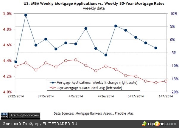 • Дальнейшее снижение количества заявок на ипотеку в США плохо для рынка