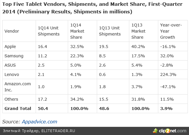 Безусловно, планируемый релиз является позитивной новостью для Amazon, и это уже нашло отражение в рыночных котировках. Однако, основываясь на опыте компании на рынке планшетов, можно сделать предположение об отсутствии серьезной угрозы в отношении Apple.