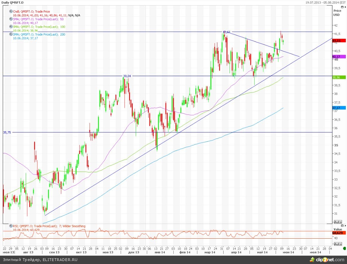 Капитализация Microsoft на прошлой торговой сессии снизилась на 0,39%. К закрытию рынков в США акции стоили $41,11.