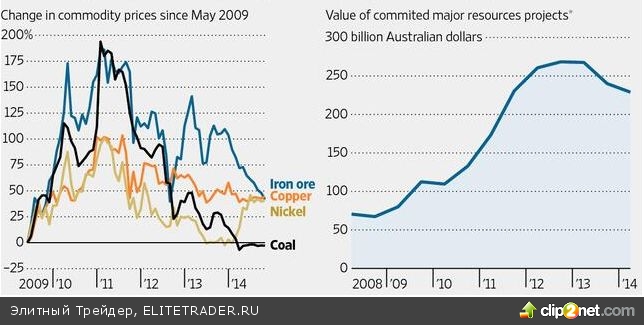 Уязвимыми местами «австралийца» в последнее время являлись слабость товарного рынка, ребалансировка китайской экономики и позиция Резервного банка, оказывающего давление на собственную валюту при помощи вербальных интервенций. Действительно, цены на железную руду, медь и уголь — основные статьи австралийского экспорта стабильно падали, что сопровождалось замедлением объемов инвестиций в горнодобывающую отрасль.