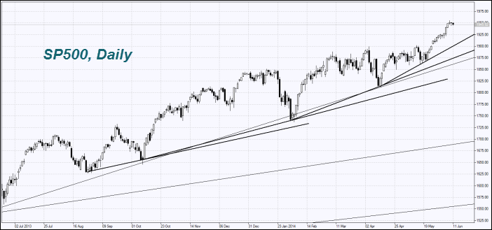 Оборот торгов на американских биржах вчера был на 17% ниже среднего за три месяца и составил 5,2 млрд. акций. Индекс SnP500 уже 32 месяца растёт без заметных коррекций хотя бы на 10%. Тогда как средняя продолжительность его непрерывного роста с 1945 года составляет всего 18 месяцев. Последняя коррекция наблюдалась лишь в 2011 году с апреля по октябрь. Отметим, что сейчас участники рынка ожидают увеличения совокупной прибыли компаний из списка SnP500 в 2014 году на 7,4%. В январе были более оптимистичные прогнозы роста на 9,7%. По нашему мнению, основным драйвером роста акций американских компаний была программа «количественного смягчения» (QE) или выкуп гособлигаций за счёт денежной эмиссии. В ходе трёх этапов QE, начиная с марта 2009 года, SnP500 вырос на 188%. Сейчас данная программа выкупа сокращается на $10 млрд. в месяц. Мы не исключаем коррекции американских фондовых рынков по мере завершения QE и ужесточения денежной политики ФРС (рост ставок). Напомним, что её очередное заседание состоится на следующей неделе. Вчера доходность десятилетних государственных облигаций США (notes) установила новый максимум за месяц 2,65%. Сегодня ни в США, ни в Еврозоне значимых экономических данных не будет.