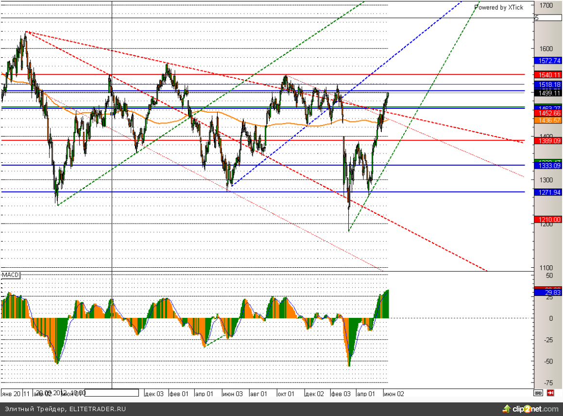 Российский рынок завершил торговую сессию среды ростом. Индекс ММВБ прибавил 0,7% и даже закрыл день выше ключевого сопротивления 1500. Теперь шансы на продолжение роста несколько выросли и уже в понедельник мы можем увидеть очередные попытки поднять российские активы на новые высоты.