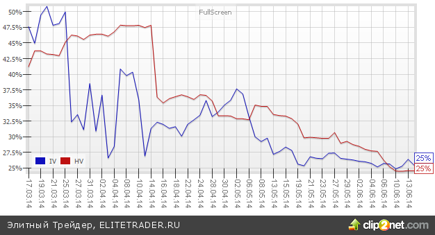 В свою очередь, подразумеваемая волатильность фьючерса на индекс РТС сейчас находится с исторической на одном уровне. Данный момент также не дает нам никаких сигналов.