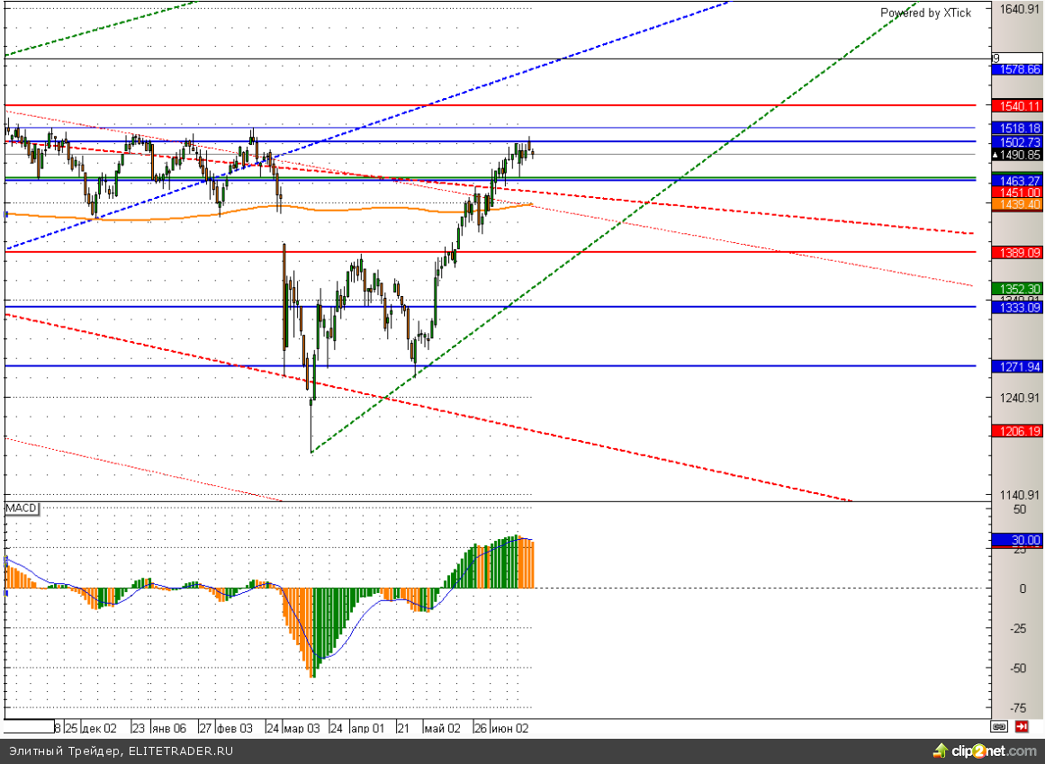 ММВБ теряет сегодня более 0,2% и снова вернулся внутрь диапазона 1480 – 1500. В данном диапазоне индекс консолидируется уже 10 дней. Поэтому выход из него, уже не за горами и, скорее всего, вниз.