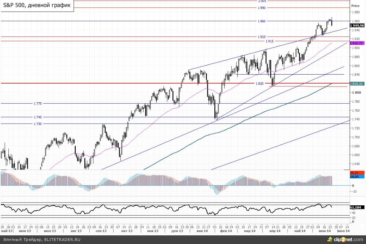 Продолжению роста на российском рынке акций сегодня с утра помешает внешний фон. В первую очередь речь идет о вчерашнем падении за океаном. Невзирая ни на какую статистику, согласно которой продажи новостроек в США и индекс потребительской уверенности в мае взлетели до максимума с 2008 года, американский фондовый рынок заметно просел. После очередного обновления максимума на старте сессии далее началась волна распродаж. На графике SnP 500 пусть в очередной раз, но все-таки нарисовалась разворотная свечная формация. Пока никакой паники нет, так что утреннее снижение российского рынка с учетом общего трендового позитива может быть легко выкуплено и соответственно можно открывать краткосрочные длинные позиции.