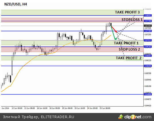 Хотя не исключено, что в преддверии более интересных отчетов (хотя и не новозеландских, а американских), инвесторы предпочтут воздержаться от решительных действий. Уже во вторник, 1 июля, США опубликуют данные по деловой активности в секторе обрабатывающей промышленности. В среду, внимание привлечет отчет по занятости в частном секторе США от ADP, который традиционно рассматривается как предварительный индикатор отчета NFP. В июле, кстати, данные по занятости в несельскохозяйственном секторе выйдут не в пятницу, как обычно, а в четверг (в связи с тем, что в 4 июля в США отмечается День Независимости). Именно тогда, 3 июля и стоит, пожалуй, ждать наибольшей активности. Умеренно позитивная статистика, доллар США, скорее всего, не устроит. Продолжающееся снижение уровня безработицы и число вновь созданных рабочих мест более 250 000 смогут поддержать американскую валюту. В этом случае можно будет ждать падения пары NZD/USD в район уровня 0,8640. Если же данные из Штатов разочаруют, новозеландский доллар получит импульс для возобновления роста, поскольку это станет еще одним сигналом к тому, что дифференциал ставок ФРС и РБНЗ в ближайшее время будет расти.