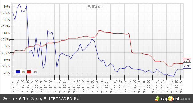 В свою очередь, подразумеваемая волатильность фьючерса на индекс РТС сейчас находится выше исторической на 2 пункта. Данный момент говорит перекупленности опционов, которая обычно сглаживается путем роста.