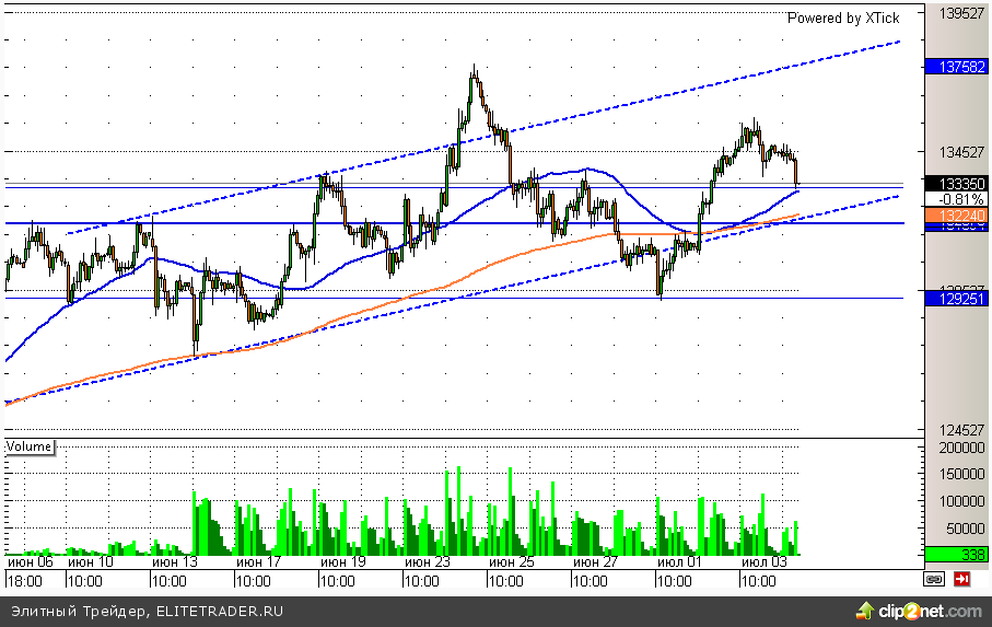 Фьючерс на индекс РТС сегодня незначительно снижается. Участники не спешат покупать в отсутствии определенности с новыми санкциями для РФ. При этом RIU4 вплотную подобрался к серьезной поддержке в районе 133000 и вполне может возобновить подъем в ближайшем будущем.