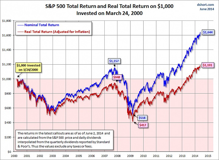 Кстати классические инвестирование в индекс с учетом инфляции и дивидендов, показывает, что пики 2000 только пройдены и 14 лет инвестирования принесли 20%...Ну или более удачно 7 лет принесли 25%. Где пузырь?