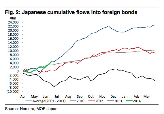Аналитики Nomura во главе с Джорджом Гонсалвесом были среди немногих, кто заявлял, что доходность американских ценных бумаг может падать в первом полугодии, хотя они и считают, что в конечном итоге, она будет расти. «Мы упоминали о том, что зарубежный спрос должен вернуться, особенно сейчас, когда стабилизировались распродажи, и UST обеспечивают относительную привлекательность в сравнении с другими государственными ценными бумагами (особенно в Японии и еврозоне). Мы ожидаем, что японские инвесторы останутся покупателями иностранных бондов и UST в будущем».