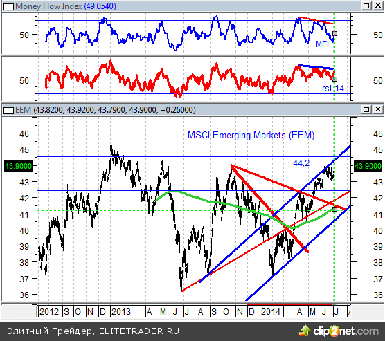 Ситуация на Украине не будет оказывать на наш рынок большого влияния. Вчера министры иностранных дел ФРГ, Франции, России и Украины договорились о мерах, направленных на достижение перемирия на востоке Украины. Условия этого перемирия будут выработаны в ближайшие дни. Нестабильность на Украине носит «долгоиграющий» характер в ближайшие месяцы мы увидим периоды, когда «пушки будут говорить» и увидим периоды когда они будут молчать а говорить будут дипломаты. С этим надо свыкнуться. Ну не будут в одном государстве жить фашисты и антифашисты. Киевская хунта может победить Новороссию силой оружия, но дальше начнется партизанская война и все опять придет к тому, что фашисты и антифашисты не будут жить в одном государстве. Влияние ситуации на Украине уменьшится, а вот влияние ситуации складывающейся на развивающихся рынках наоборот возрастет.