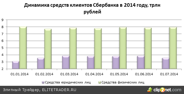 Сбербанк отчитался по РСБУ за июнь. Прежде всего лидер отечественного банковского сектора порадовал увеличением объема вкладов физических лиц, зафиксировав в июне приток в 0,95%, после такого же оттока месяцем ранее. Однако кто-то приходит, а кто-то уходит: объем средства юридических лиц сократился на 6,98% всего за месяц. На данный момент еще нет общей статистики по банковскому сектору, но я предполагаю, что отток в корпоративном секторе может быть вызван одной из двух причин: либо юрлица находят банки с более высокими ставками по предназначенным для них депозитам, либо ухудшается общая ситуация с вложениями корпоративных клиентов в банковский сектор. При этом повышение объема вкладов граждан отчасти обусловлено ростом процентных ставок в Сбербанке. Да, они по-прежнему ниже, чем у большинства банков, но для тех, кто выбирает из двух-трех крупнейших кредиторов России, даже незначительное повышение ставки может играть решающую роль.