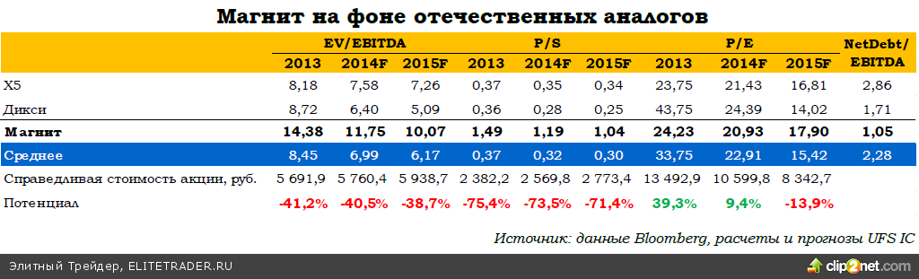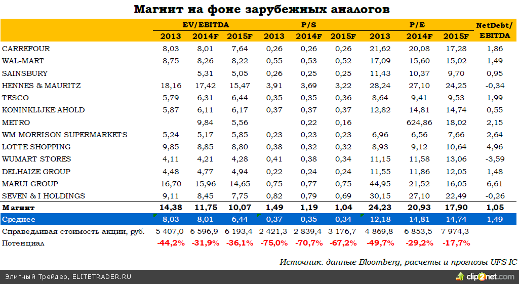 Однако до сих пор остаются опасения относительно того, удастся ли «Магниту» продемонстрировать настолько же сильные финансовые показатели в 2К14. Несмотря на то, что в 1К14 снижение рентабельности было не таким сильным, как мы опасались, рынок по-прежнему сохраняет осторожность ввиду того, что слабый рубль неизбежно окажет давление на рентабельность из-за присутствия импортных товаров в продаже при сугубо рублевом характере выручки. Если финансовые итоги 2К14 (публикация ожидается 23 июля) также окажутся сильными и покажут улучшение показателей эффективности бизнеса, котировки «Магнита» получат еще один импульс для роста, несмотря на то, что в терминах мультипликаторов компания по-прежнему выглядит очень дорого.