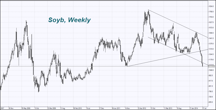 Как видно из таблицы, участники рынка ожидают дальнейшего повышения прогнозов урожая в текущем году от USDA. Соответственно, несмотря на рост внутри дня из-за плохой погоды в Европе, большинство зерновых фьючерсов вчера закрылись с понижениием. Дополнительным негативом стал очередной аукцион в Китае по продаже государственных резервов кукурузы на внутреннем рынке. В среду и четверг было реализовано 2,2 млн. тонн из предложенных 4,5 млн. тонн. Ликвидация госрезервов сопровождается сокращением китайского импорта зерновых, что приводит к их избытку на мировом рынке.