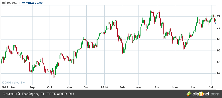 На данный момент получается, что негативные факторы доминируют. Это нашло отражение в котировках многих банков. Особенно пострадал Citi, акции которого с начала года упали на 10%. Лучшую (и весьма впечатляющую) динамику показал любимый банк Баффета Wells Fargo – его бумаги прибавили 15,7%. В целом, консолидированный банковский индекс KBW в последнее время несколько более слаб относительно рынка в целом и в отличие от Dow Jones и SnP500 в июле не обновил максимумы.