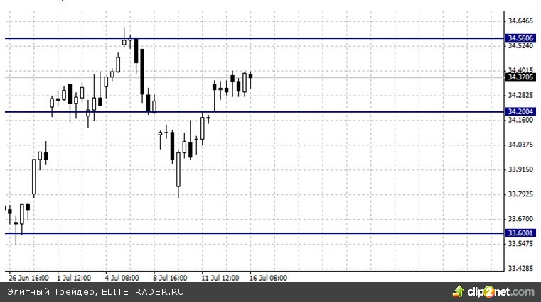 В краткосрочной перспективе, учитывая рост ставки межбанковского кредитования Mosprime overnight c 8,59% до 8,68%, мы не исключаем снижения пары USD/RUB до 34,20.