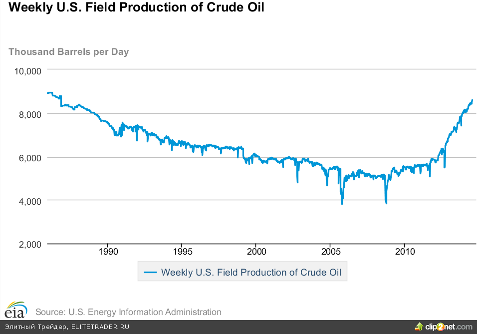 Кроме того на фоне растущей добычи на месторождениях сланцевой нефти внутреннее производство в стране выросло до максимального значения с 1986 года. Согласно полученным данным, добыча в США составила в среднем 8,592 млн. баррелей в день.