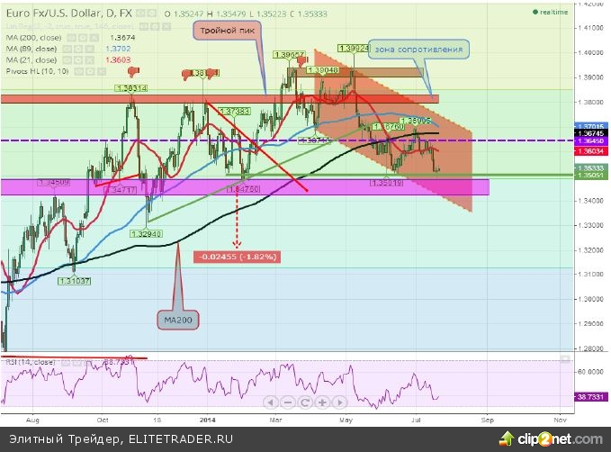 EUR/USD: дневной график. Тестирование 1,35 состоялось, что дальше!? Рекомендуются короткие позиции на отскоках для агрессивных игроков.