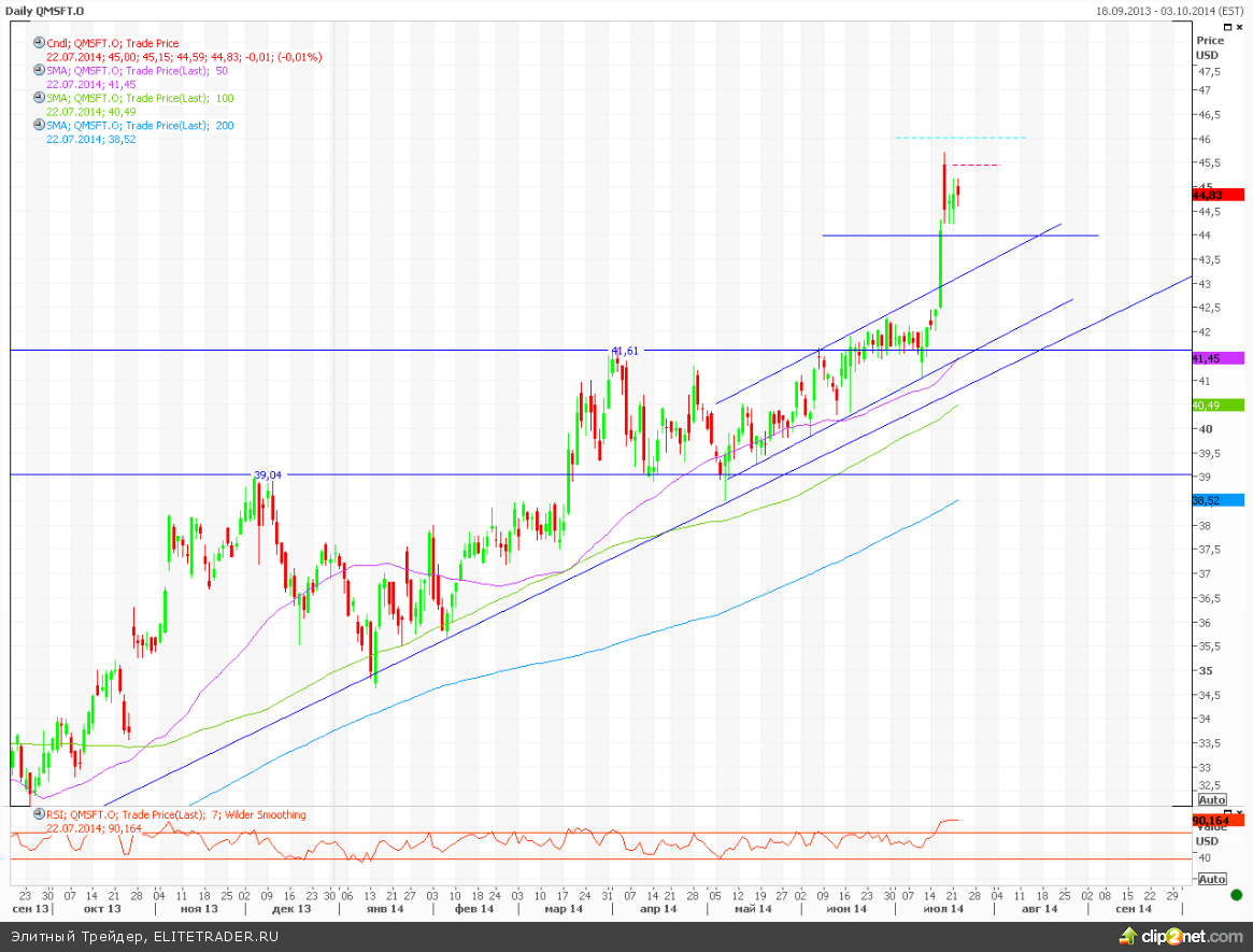 Примерно в это же время Microsoft опубликовал несколько противоречивый отчет за 4-й финансовый квартал 2014 года. Акции растут на премаркете на 1,5% (см. наш обзор о причинах роста).