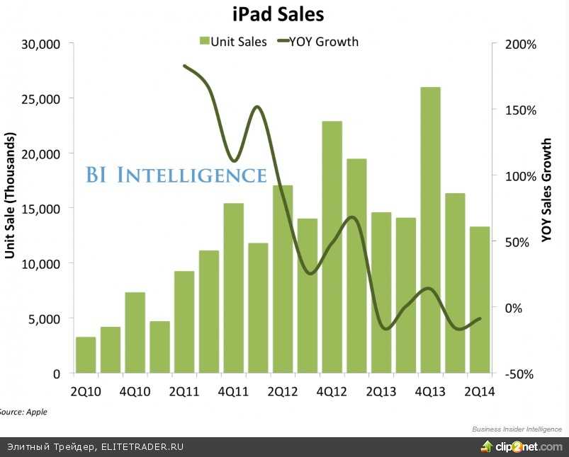 Одновременно продажи iPad упали на 9% (г/г) и оказались несколько разочаровывающими.