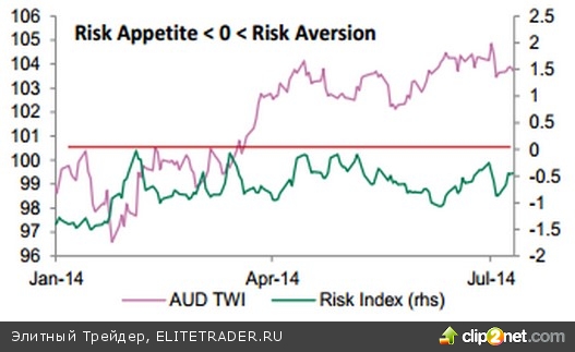 Динамика взвешенного по торговле индекса AUD и индикатора риска