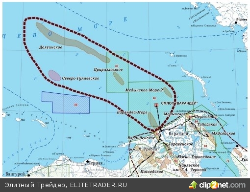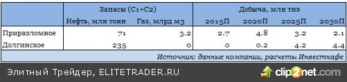 Газпром нефть уже ведет добычу на Приразломном месторождении. В 2014 году объем добычи на нем должен составить порядка 300 тыс. тонн, к 2015 году будет добыто 2,7 млн тонн, а к 2021-му добыча достигнет пика на уровне 5,5 млн тонн, после чего начнет снижаться. Также Газпром нефть уже начала бурение поблизости — на Долгинском месторождении. Результаты доразведки должны быть получены в конце 2014 года. Начало добычи запланировано на 2020 год, а к 2026-му планируется достичь пика добычи на уровне 4,8 млн тонн нефти в год.