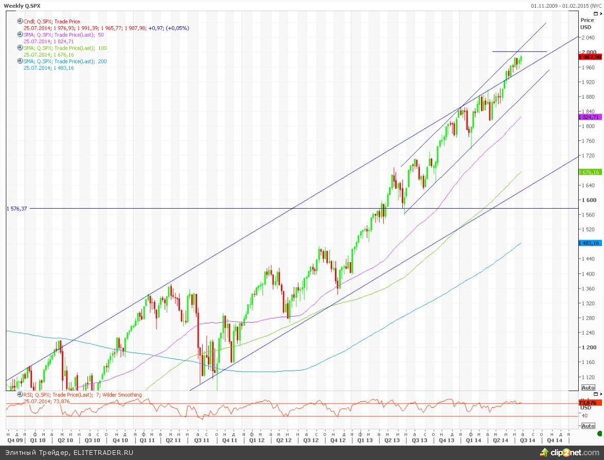 Не все так уж хорошо с точки зрения новостного фона. Геополитическая обстановка остается напряженной. Призрак европейского долгового кризиса продолжает витать в атмосфере – вчера Espirito Santo Financial Group (материнская компания второго по величине португальского банка) попросила защиты от кредиторов. Также негативный посыл обозначили цифры МВФ, который снизил в среду прогноз роста экономики США в 2014 году до 1,7% с июньских 2%. Однако на американских рынках все вышеперечисленные факторы особо не сказались. Почему?