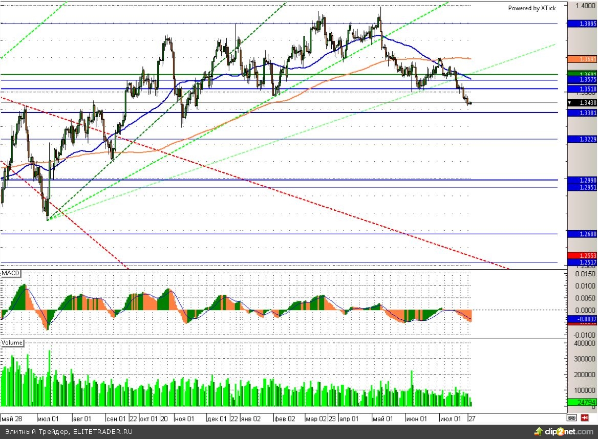 Тем временем предварительны данные за июль по деловой активности в сфере услуг США были опубликованы накануне и оказались несколько хуже ожиданий, добравшись до отметки 61. Данная статистика немного сдерживает доллар от более сильного укрепления. В паре с евро американская валюта добралась уже до уровня 1,34. Здесь располагается сильная поддержка, от которой вполне может произойти краткосрочный отскок вверх.