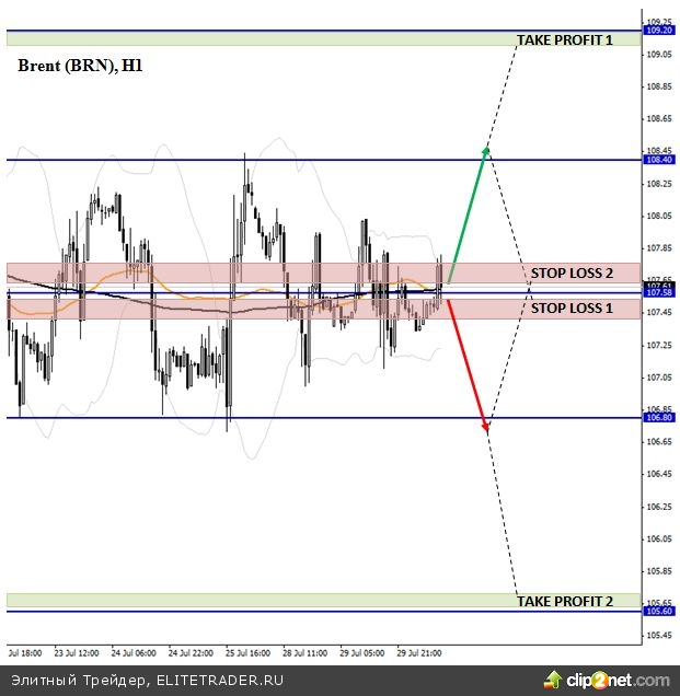 Стратегия 1. Покупаем Brent, если котировки закроются выше уровня сопротивления 108,40. Цель 109,20. Stop-Loss = 107,50