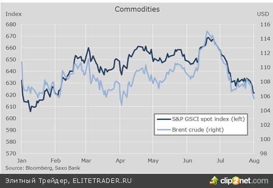 Сырье, как и валюты, отчаянно пытается определиться с направлением. Начался август, а на рынках сырья воцарилась чрезвычайно низкая волатильность: ничего подобного не было в истории рынка за много лет. Значения сырьевого индекса SnP GSC свидетельствуют о том, что годовая волатильность опустилась ниже 10% и достигла отметки 9.3% - это более чем в два раза ниже среднего показателя в 22% за период с 2000 года - даже 2013 год был волатильнее.