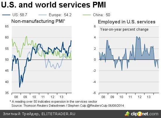 Вчера мы вновь получили порцию сильной статистики. ISM сообщил о росте деловой активности в июле в секторе услуг, на который приходится порядка 80% экономики США. Соответствующий индекс NMI вырос до 58,7 пункта с июньских 56 пунктов, что стало максимальным уровнем с момента создания индекса в январе 2008 года. Аналитики ожидали куда более скромного роста до 56,3. В то же время интересным образом опрашиваемые менеджеры смотрят на ценовую составляющую, которая в совокупности в итоге снизилась с 61,2 пункта до 60,9 пункта.