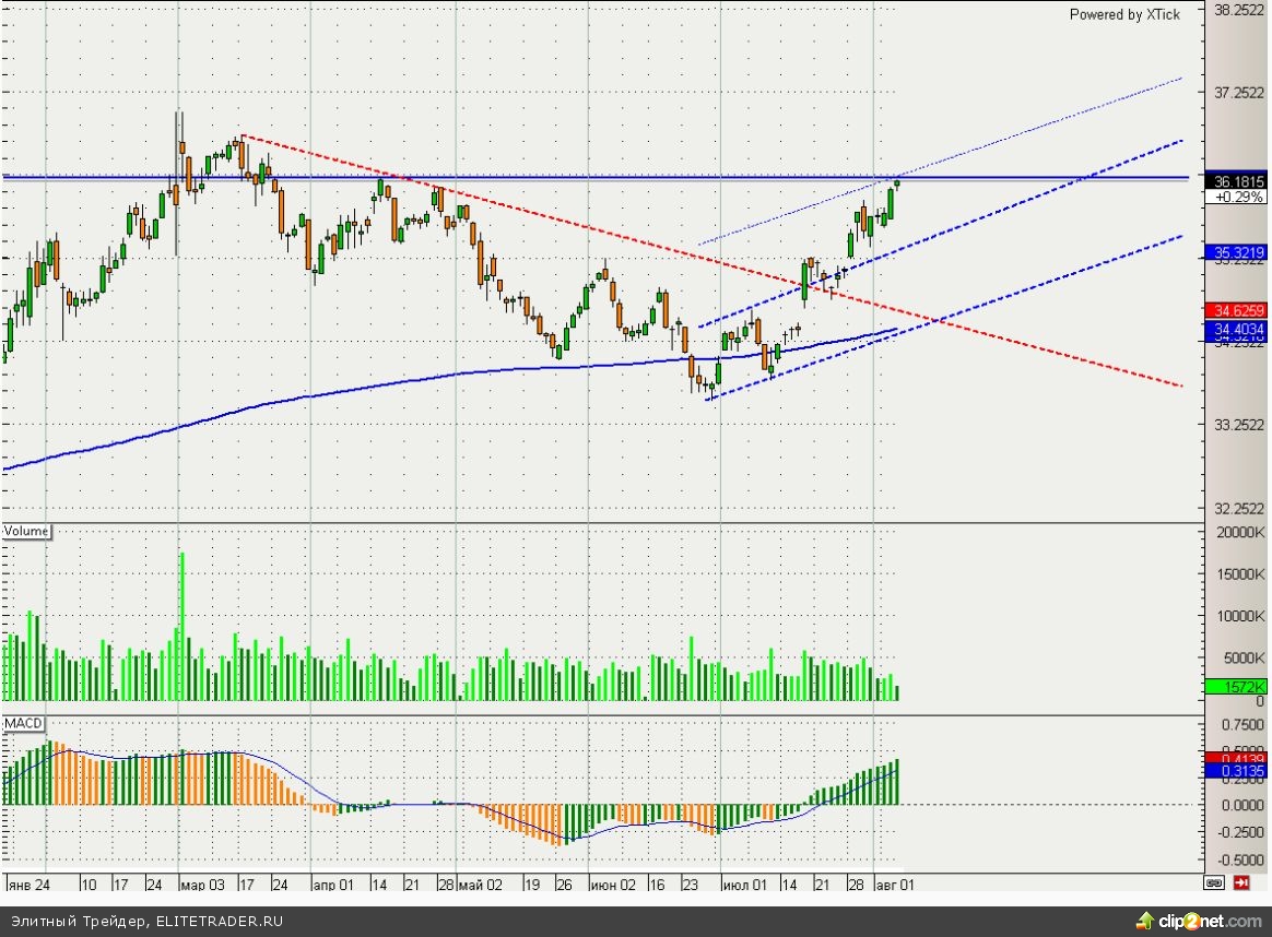 При этом дополнительное давление на рубль оказывают действия правительства по заморозке пенсионных накоплений на 2015 год, что может ограничить возможности роста экономики страны, а также привести к дополнительным потерям бюджета. На этом фоне доллар/рубль благополучно преодолел серьезное сопротивление в районе 35,8 и уже даже достиг следующей цели роста в районе 36,2. От данного уровня пара не единожды отскакивала еще в апреле текущего года, и этот раз может не стать исключением. Драйверами для данной динамики могут стать: подрастающая нефть и хорошие макроэкономические данные, которые выходят по экономике РФ в последнее время. Поэтому от купленных ранее долларов можно постепенно избавляться, особенно учитывая поддержку для рубля от ЦБ РФ, который на прошлом заседания поднял ключевую ставку сразу на 0,5%.