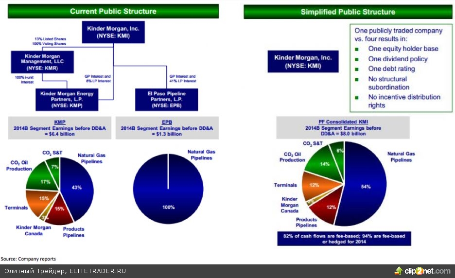 Среди отдельных бумаг отметим лидера роста в составе SnP500 - акции владельца нефте- и газопроводов в США Kinder Morgan, подорожавшие на 9% на фоне сообщений о консолидации активов компании и предстоящем выкупе бумаг у инвесторов на сумму $44 млрд. Приблизительно $70 млрд. составит общая стоимость сделки. Глава Kinder Morgan заявил, что объединенная компания станет крупнейшей в сфере энергетической инфраструктуры в Северной Америке и третьей по размеру среди энергетических компаний с оценочной стоимостью примерно $140 млрд.