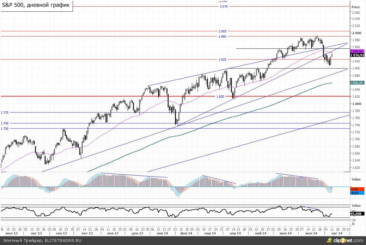 В данный момент сентябрьский фьючерсный контракт на SnP 500 торгуется с повышением на 0,09%, около отметки 1934.