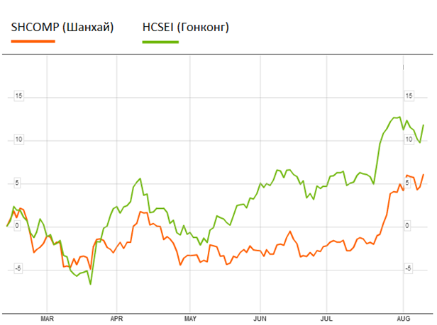 С марта этого года фондовый рынок Поднебесной неплохо подрос на ожиданиях государственных стимулов, которые могут оживить экономический рост. Однако материковый индекс Shanghai Composite (SHCOMP) существенно отстал от своего Гонконгского аналога Hang Seng China Enterprises Index (HCSIE). Если первый прибавил около 11% со своей нижней точки, то последний вырос примерно на 18%.