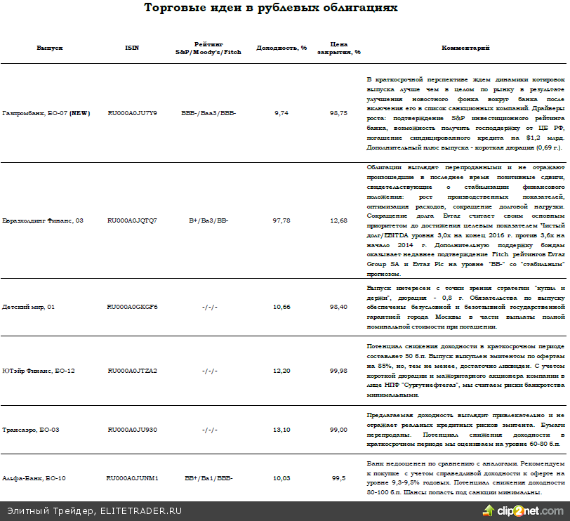 Торговые идеи на долговом рынке