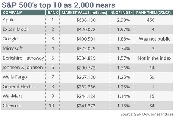 Индекс SnP 500 впервые в истории в понедельник торговался выше 2,000. Где шумиха по этому поводу? Это весьма большая разница с уровнем конца 90-х, когда индекс Dow преодолел 10,000, и это было объявлено апофеозом новой экономики, в которой каждый хочет разбогатеть за счет акций доткомов.