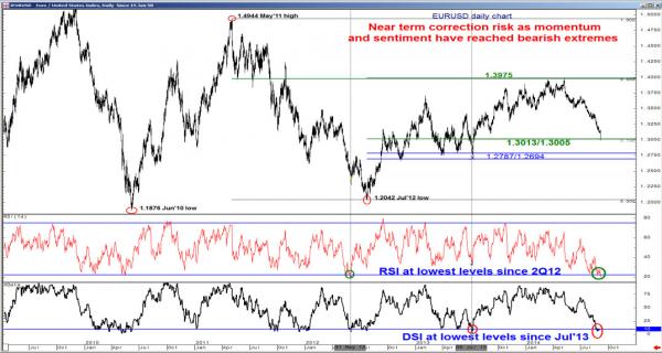 В частности, RSI достиг минимальных уровней со второго квартала 2012 года, тогда как DSI (дневной индикатор настроений) достиг 6% - минимального уровня с июля 2013 года. Такие условия создают потенциал для роста в рамках технической коррекции.