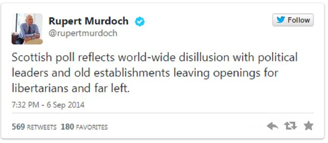 А вот Руперт Мердок считает, что опрос отражает мировое разочарование в политических лидерах и старых учреждениях.
