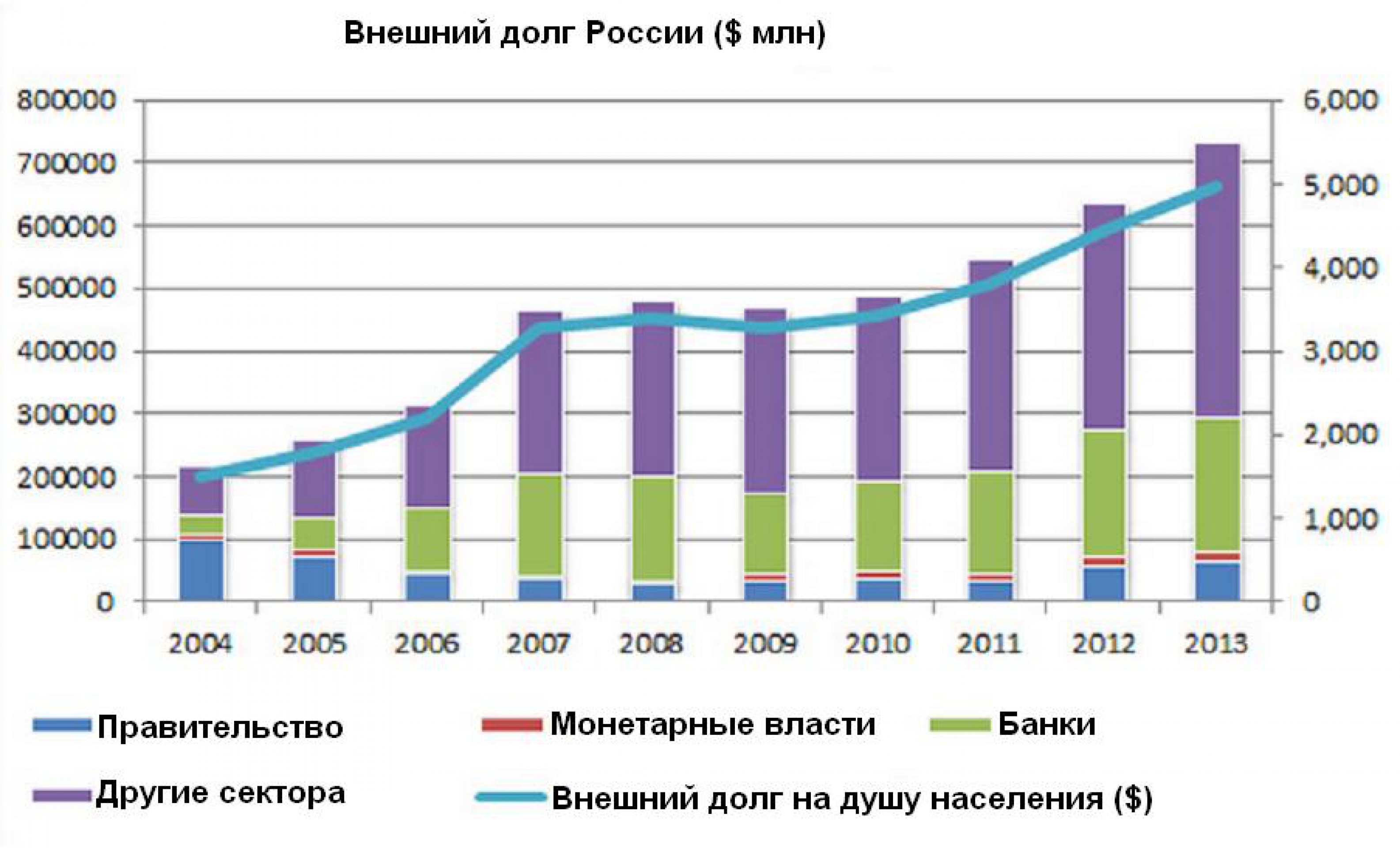 Внешний долг российских компаний, который должен быть погашен в течение 12 месяцев, составляет $121 млрд (6% ВВП).