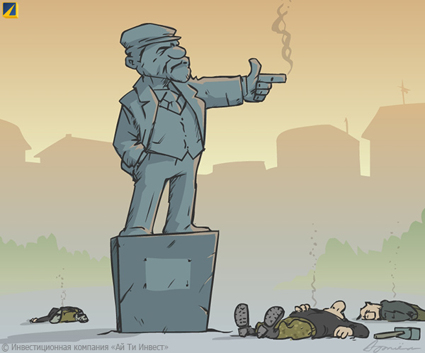 Добрый день. На минувшей неделе климатических катаклизмов было не так много – мелочи вроде землетрясения магнитудой 5.3 на границе России и Азербайджана (без последствий) не в счёт; тут же явно выделяется неожиданное извержение вулкана Онтакэ в Японии, заставшее врасплох массу туристов – в результате погибли десятки людей. На Ростов-на-Дону надвигаются ядовитые пауки под названием "чёрные вдовы", которых у нас почему-то именуют на тюркский манер "каракуртами" – видимо, такова сила "евразийства": пауки зачем-то стали активно расширять ареал обитания. В украинских делах сравнительное затишье – пользуясь которым, Брюссель, Москва и Киев вроде бы достигли компромисса по поставкам газа: собственно, компромиссного-то там ничего нет – это просто ЕС заставил Украину принять условия Газпрома, взамен пообещав оплатить уже накопленные долги последнему; видимо, европейцев напугали прогнозы суровой зимы и перспективы остаться во время неё без российского топлива. Деньги стал считать и Коломойский – жалуясь на реквизиции своих активов российскими властями, он хочет подать в суд Гааги во имя компенсации: вот только её сумма (2 млрд.) превышает арестованное имущество на порядок – откуда следует, что война войной, а гешефты "борисабрамычам" важнее. Их подручные заняты более интересным делом: проводят "люстрации" неугодных депутатов через их опускание в мусорные баки, но ррреволюционное нетерпение ведёт к конфузам – в Одессе крещение помойкой вместо чаемого регионала учинили местному вождю правосеков. В Харькове порушили гигантский памятник вождю-основателю Украины Ульянову по кличке Ленин – чему возмутился мэр Кернес по кличке Гепа, пообещавший восстановить истукана в прежнем величии; в процессе демонтажа разгневанный кощунством бетонный Ильич крепко заехал в глаз одному из супостатов и напулял осколками ещё нескольким – короче, свидомое евро-быдло развлекается славно, хотя и однообразно.