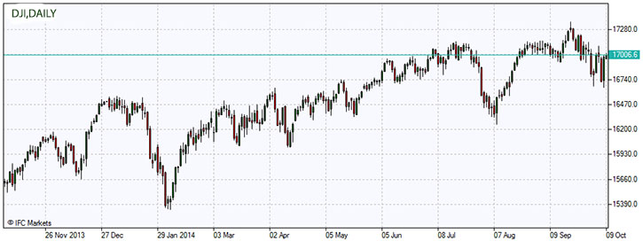 В среду американские фондовые рынки резко возросли после выхода протоколов заседания ФРС: инвесторы обеспокоены медленными темпами роста мировой экономики и его влиянием на экономику США. Согласно протоколам заседания Федерального комитета по открытым рынкам 16-17 сентября, некоторые представители ФРС заявили, что темпы экономического роста в США «могут быть медленнее ожидаемых, если рост мировой экономики окажется слабее прогнозов». Сделанное регуляторами валютной политики заявление по итогам заседания подтвердило обещание удержать процентные ставки вблизи нулевой отметки на «значительное время» после завершения программы выкупа облигаций в октябре. Ралли на рынках компенсировало вчерашнее резкое падение, когда SnP500 опустился на 1,5% на фоне опасений по поводу мирового экономического роста и слабых экономических данных из Германии. Эксперты объясняют такую реакцию рынка ожиданиями более решительных мер от ФРС и последующим облегчением, когда стало известно, что ФРС сосредоточено на глобальном экономическом росте и на том, какое давление оно оказало на доллар, и планами не повышать ставку. Индекс SnP 500 закрылся на 33,79 пунктах, или 1,8%, на отметке 1,968.89. Мы можем считать, что это его самое значительное дневное увеличение за год. Индекс Dow Jones Industrial Average подскочил до 274.83 пункта, или 1,6%, до 16,994.22.